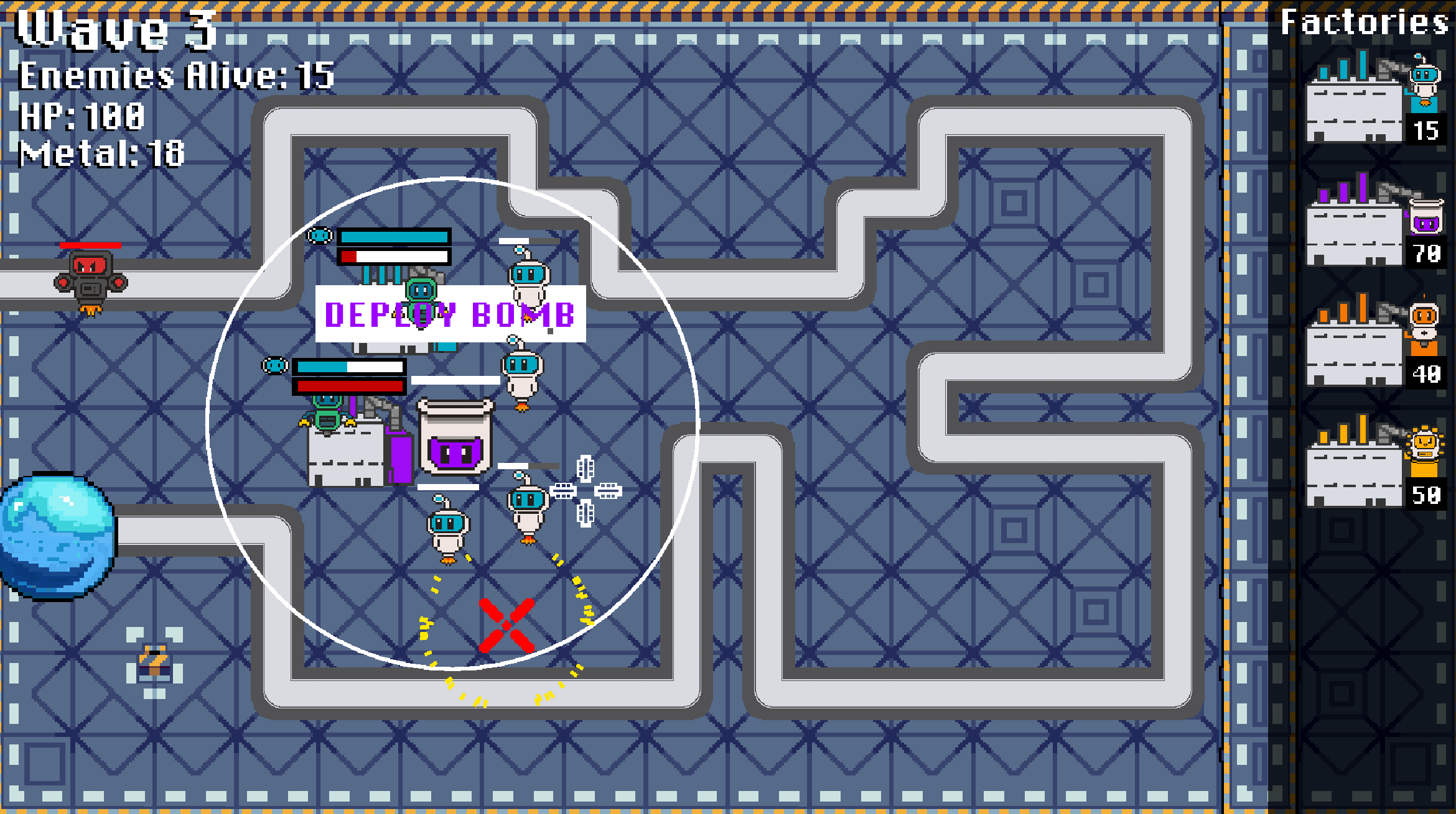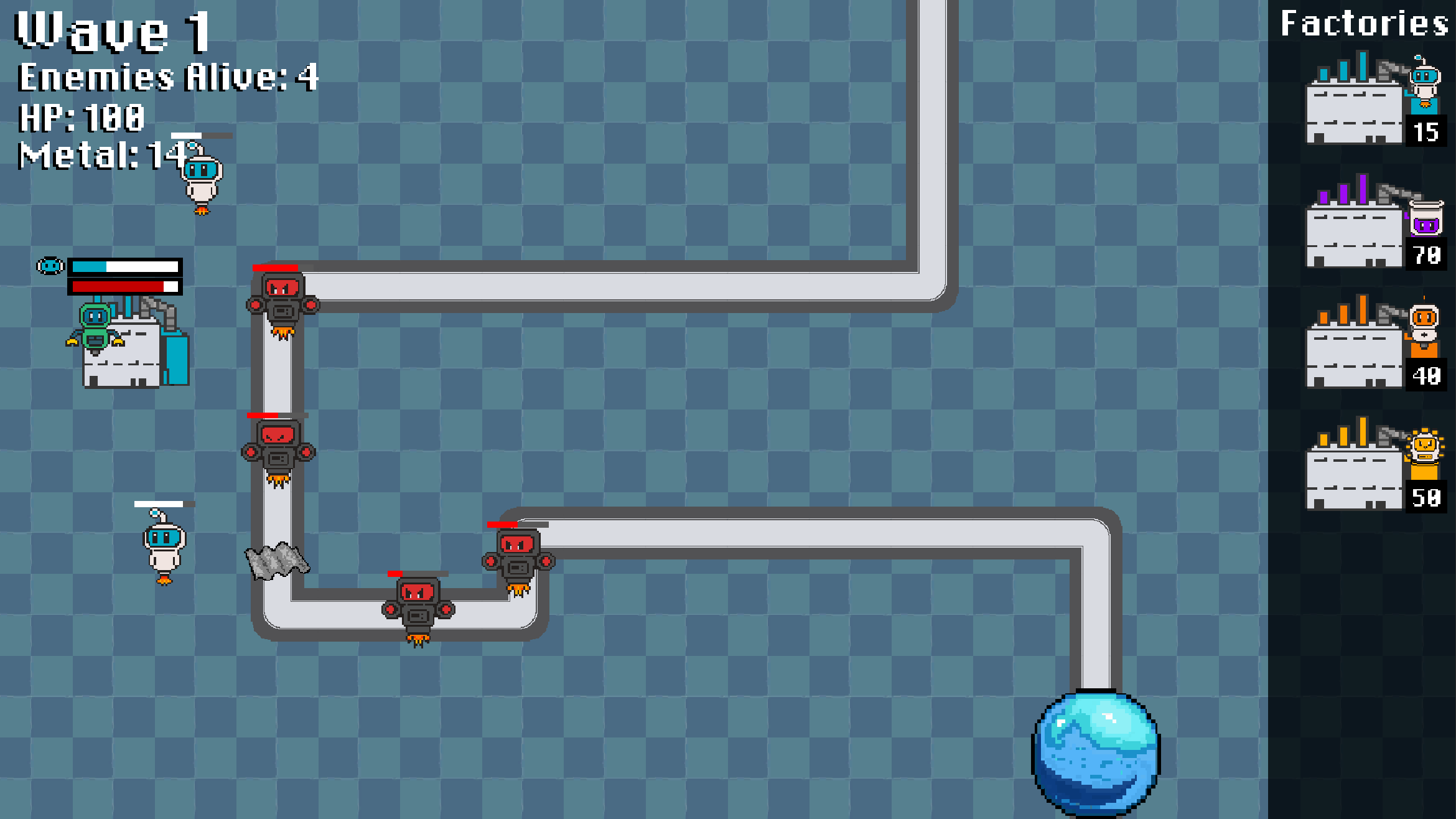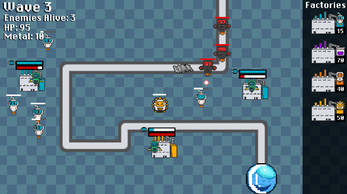 An industrial tower defense game! Defend the safety of your planet from evil robots by constructing an army of robots yourself. Upgrade factories and mine resources to make more powerful robots.
